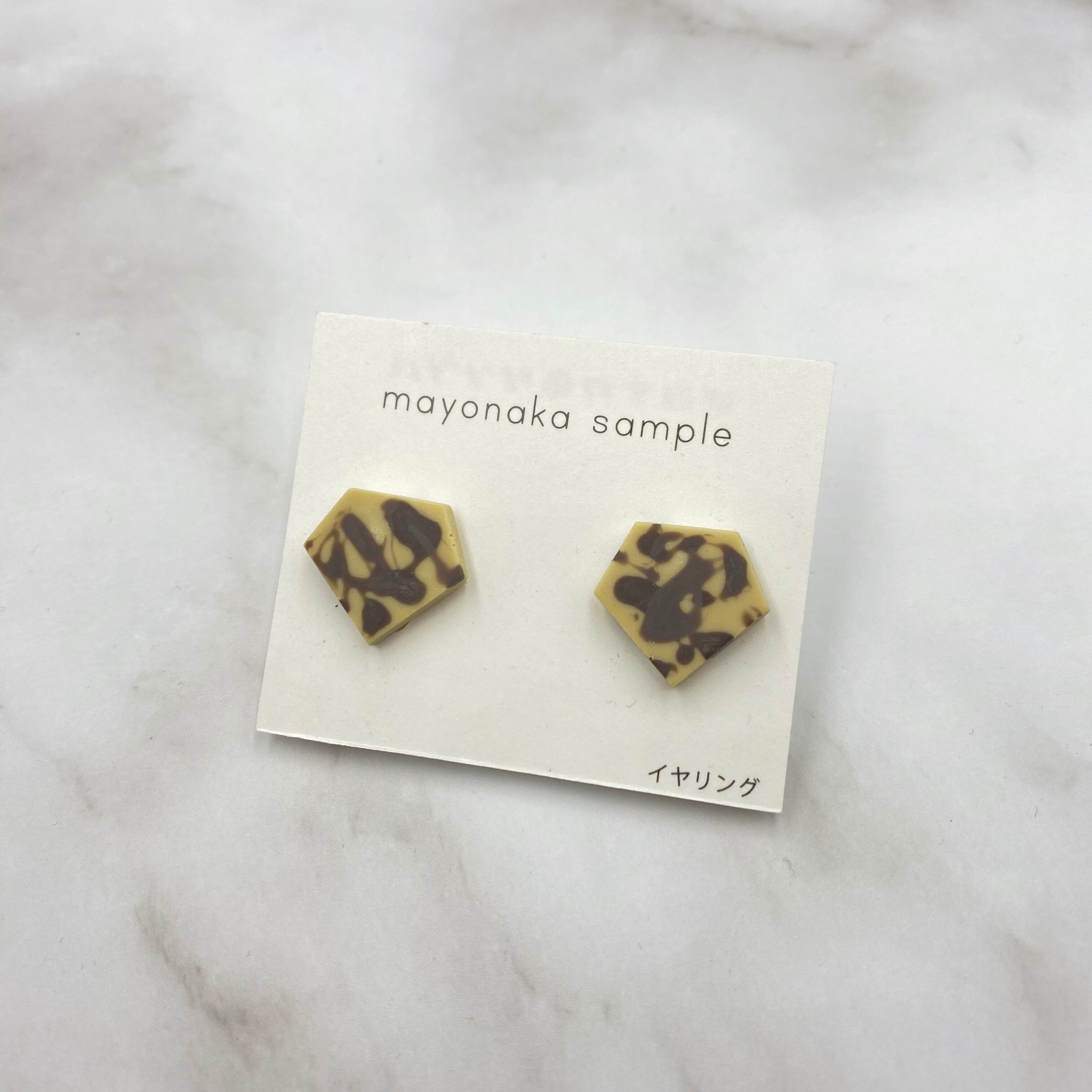 表面に模様が入ったダイヤモンドの形のイヤリングです。