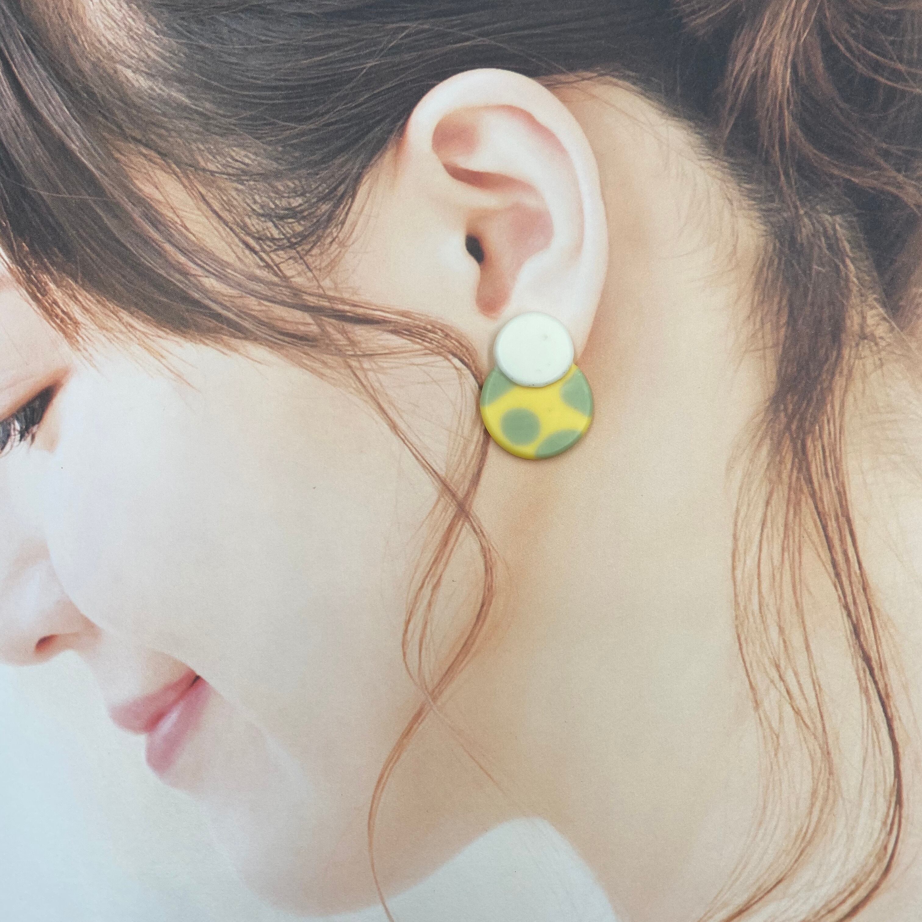 丸を二つ重ねたようなイヤリングです。
