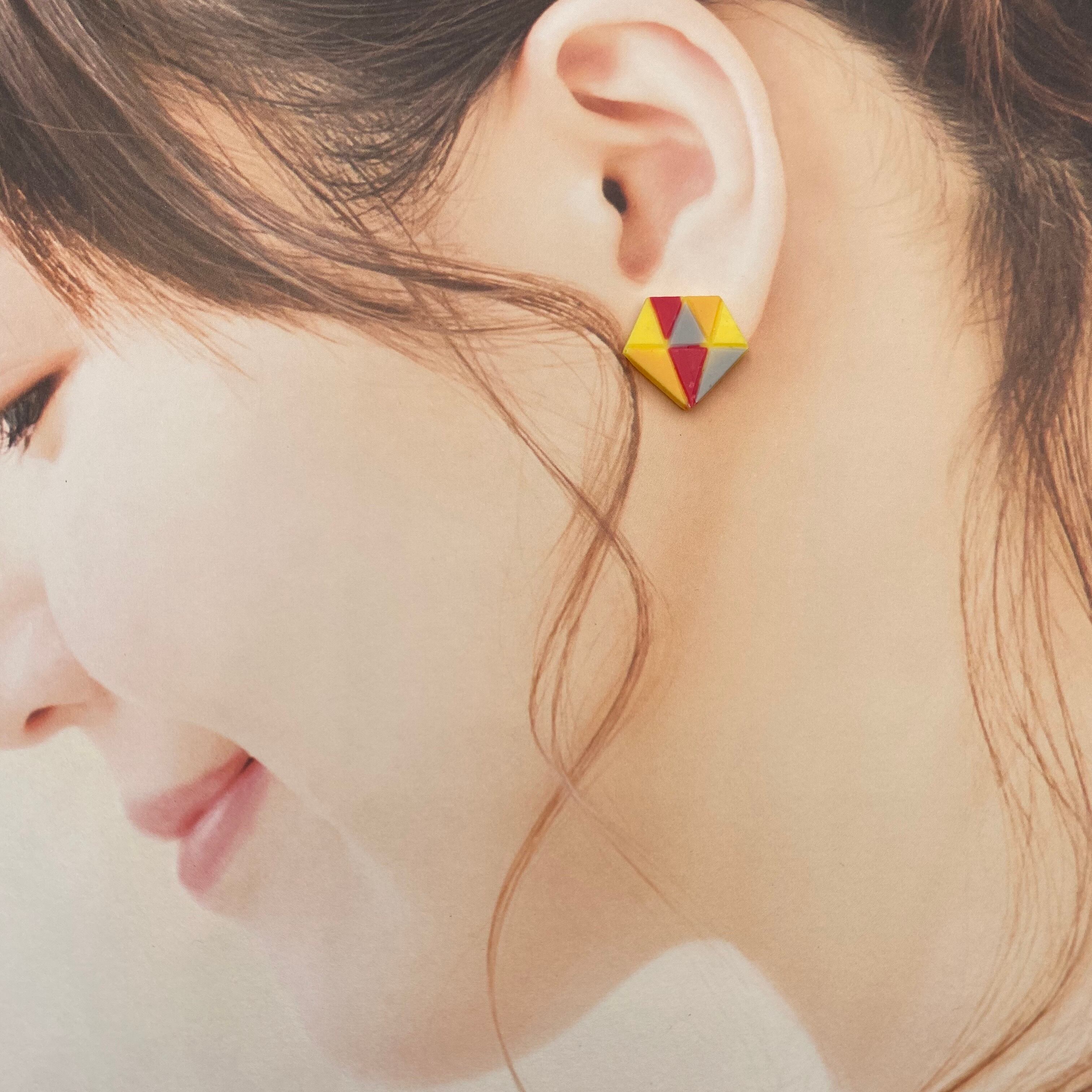 表面に模様が入ったダイヤモンドの形のイヤリングです。