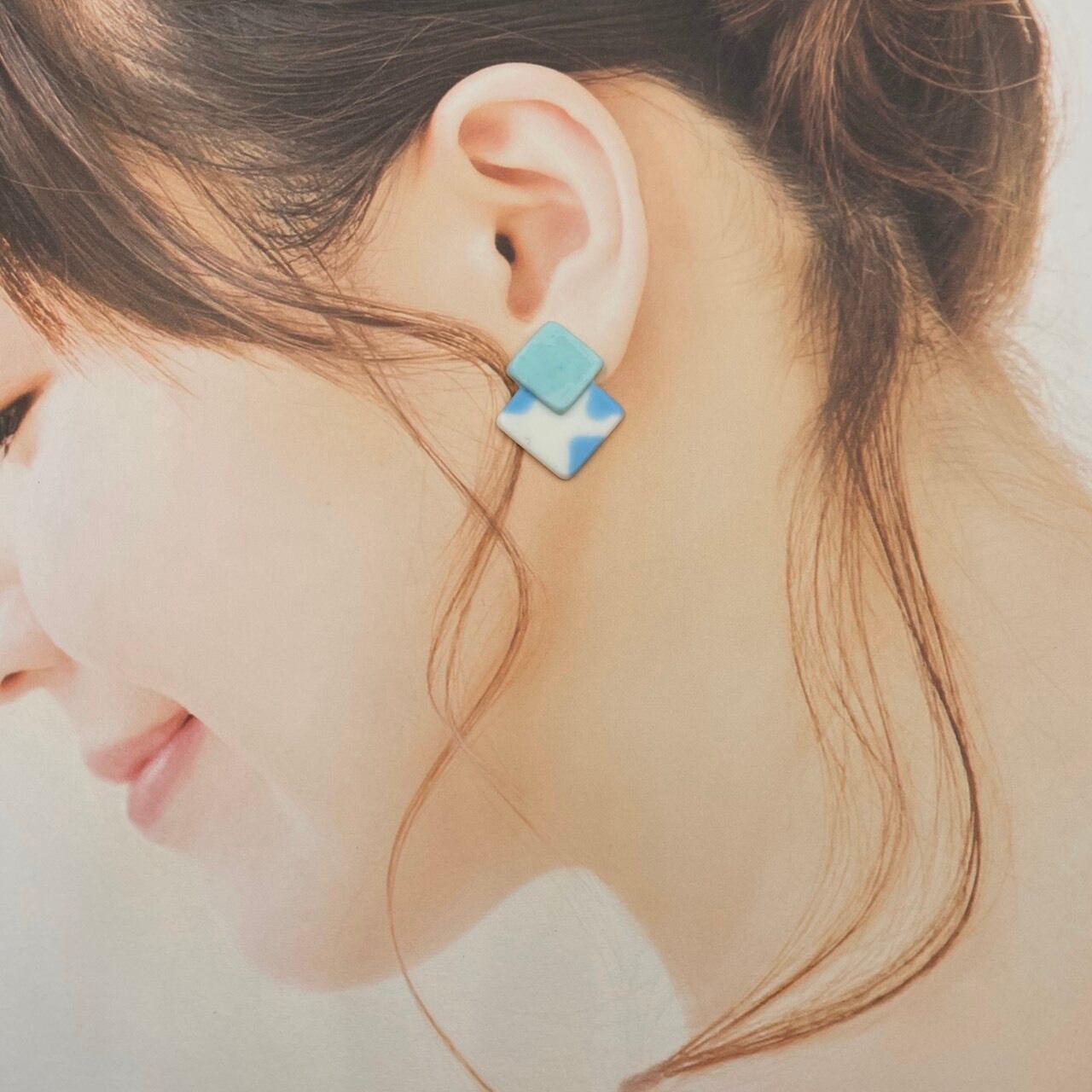 四角形を2つ、ずらして重ねたようなイヤリングです。