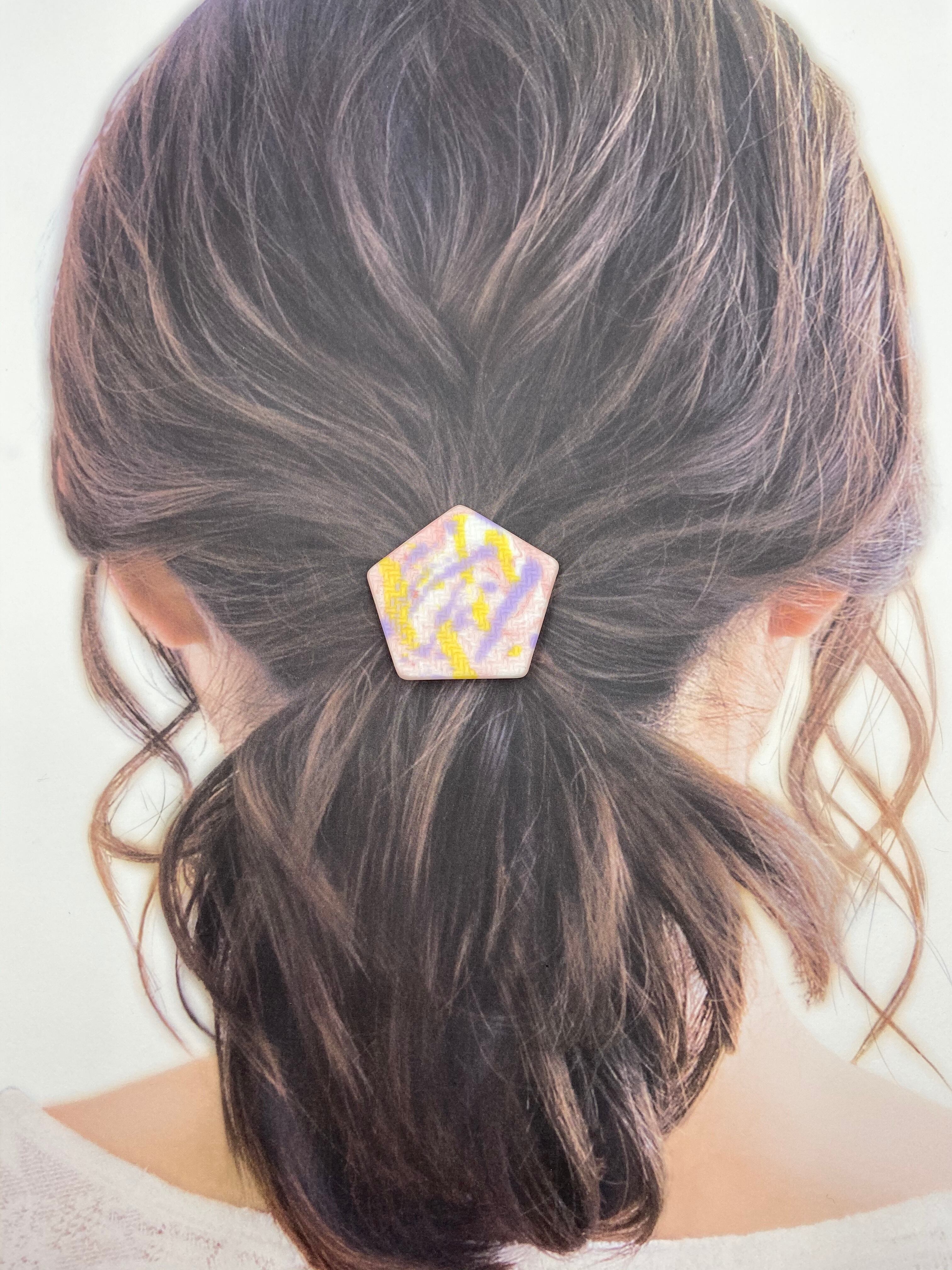 表面に模様のある五角形のヘアゴムです。