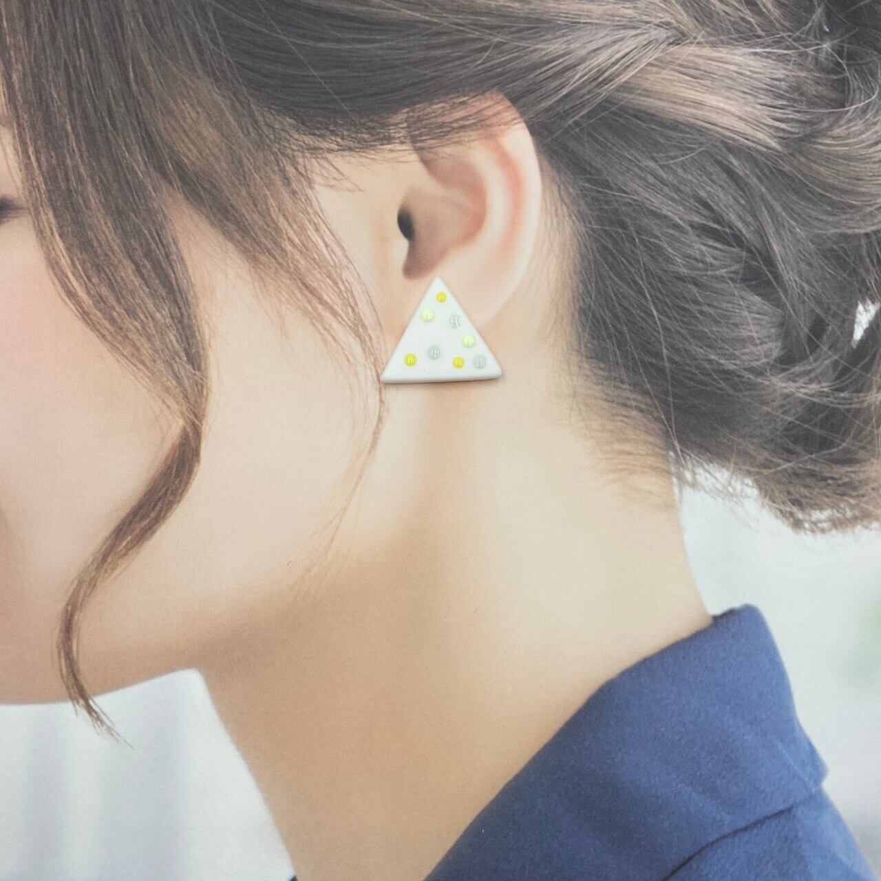 ぷっくり立体的なドットのついたイヤリングです。
