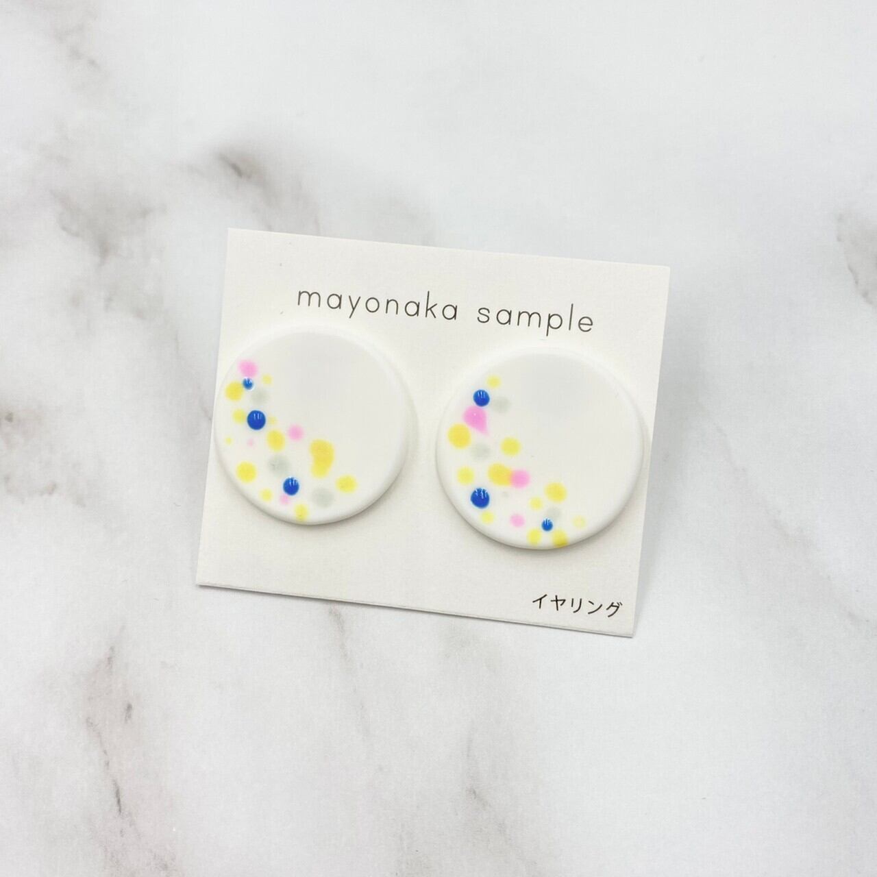 ぷっくり立体的なドット(青のみ立体)のついたイヤリングです。