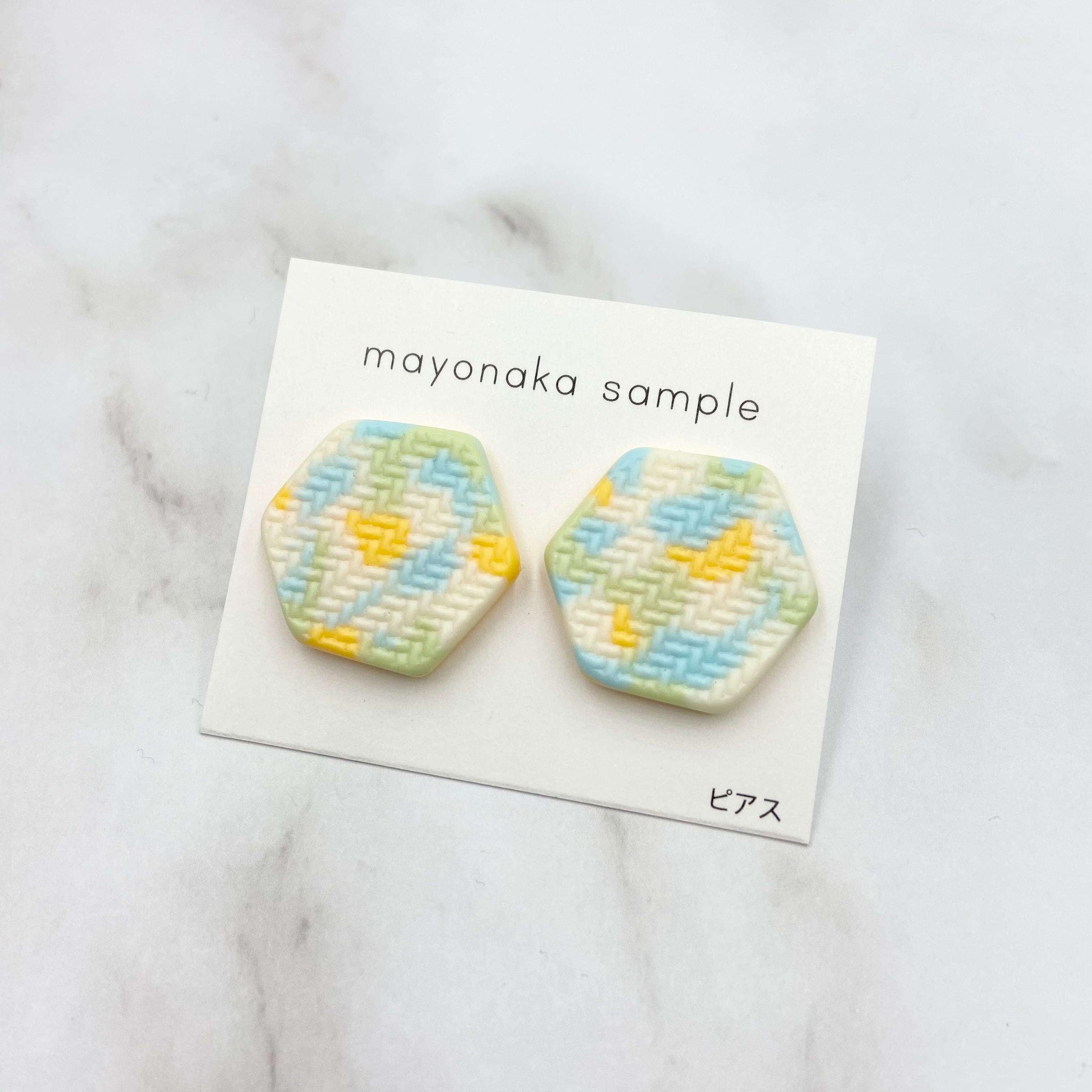 表面に模様のある六角形のピアスです。