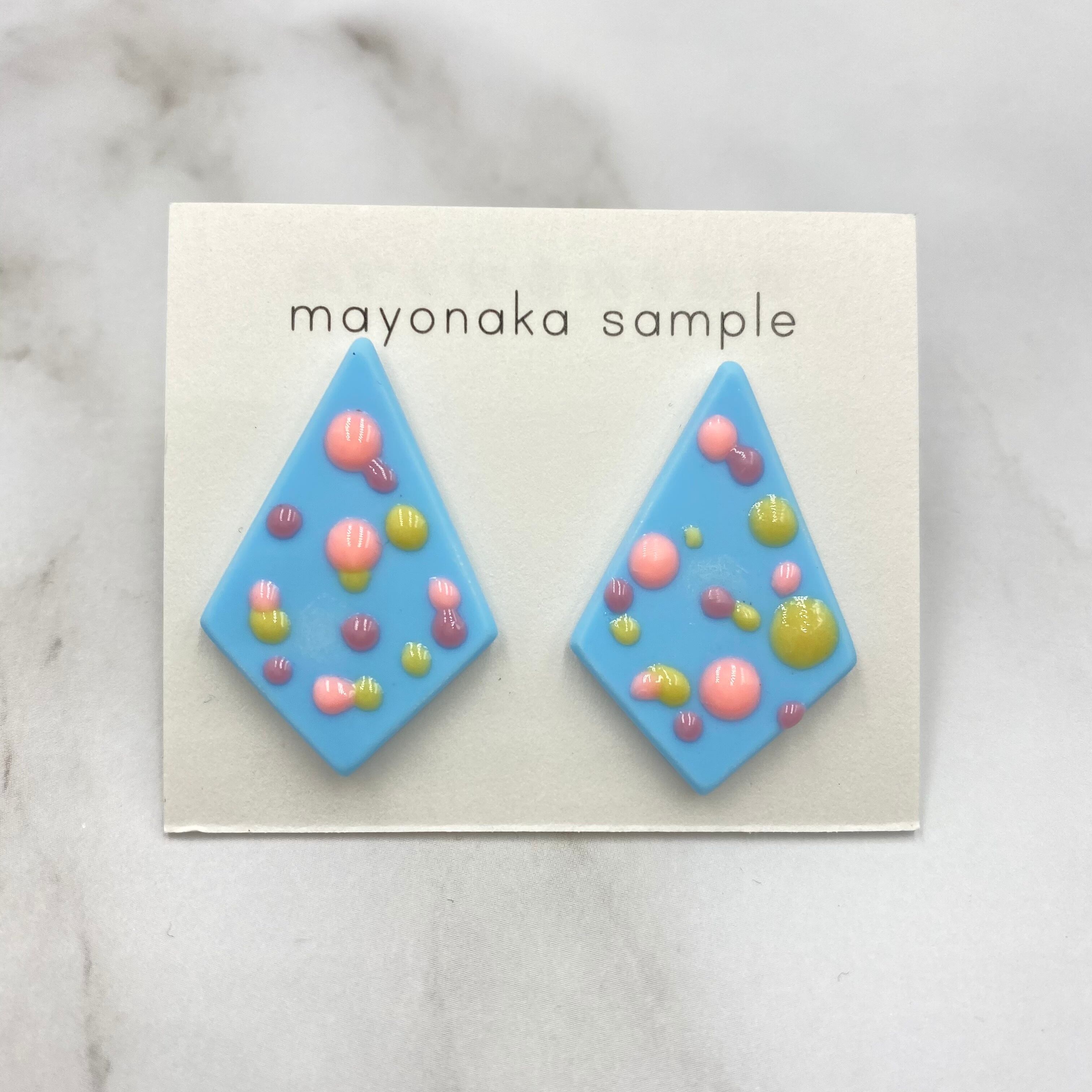 表面がぷっくりしたドットの菱形のイヤリング(ピアス)です。