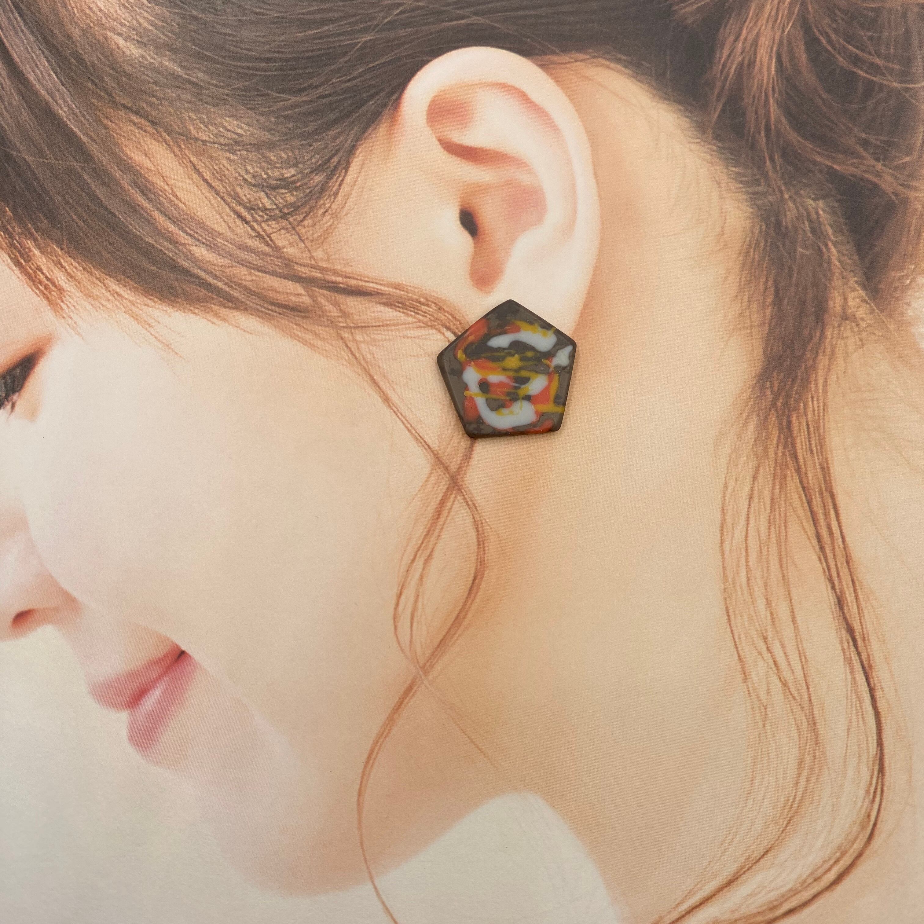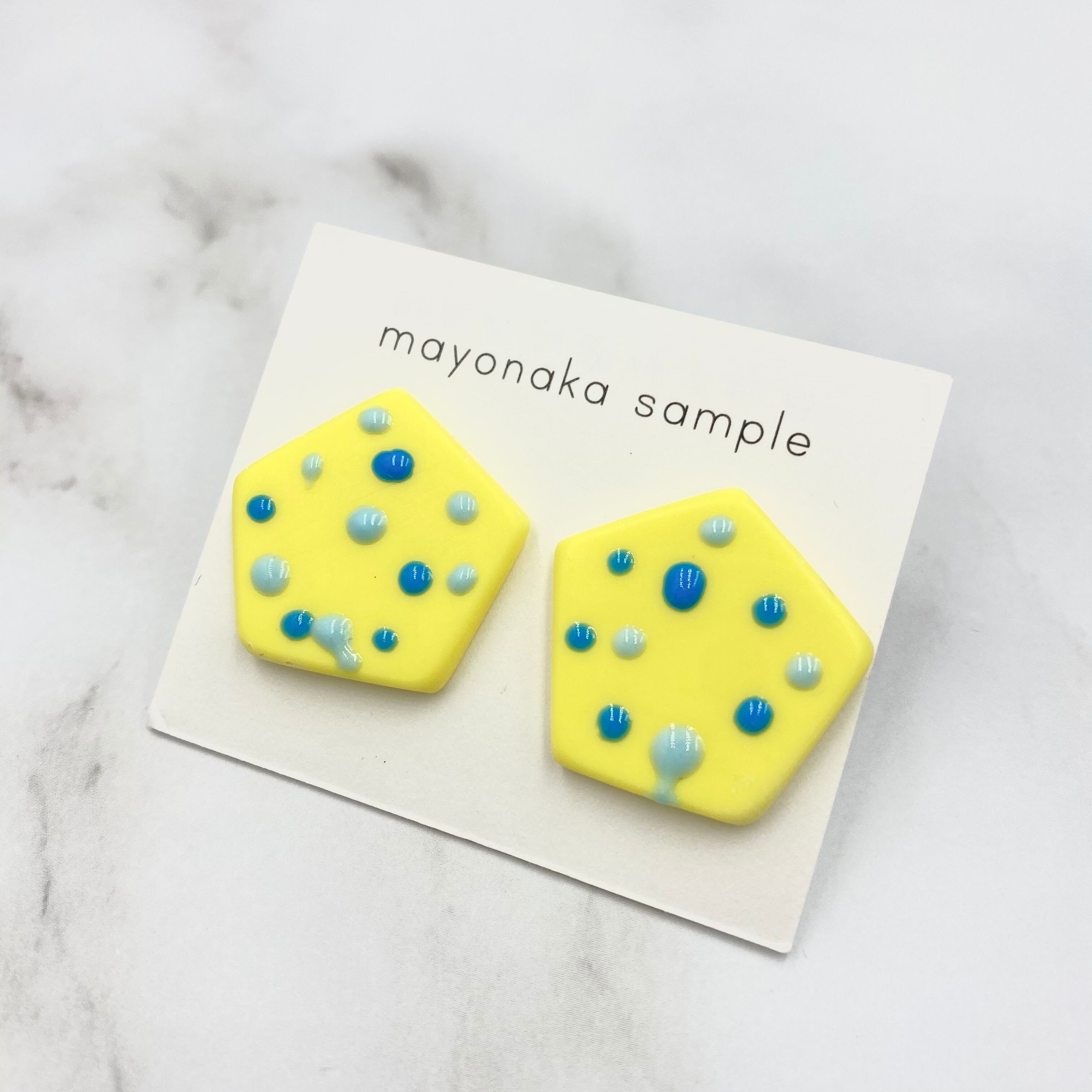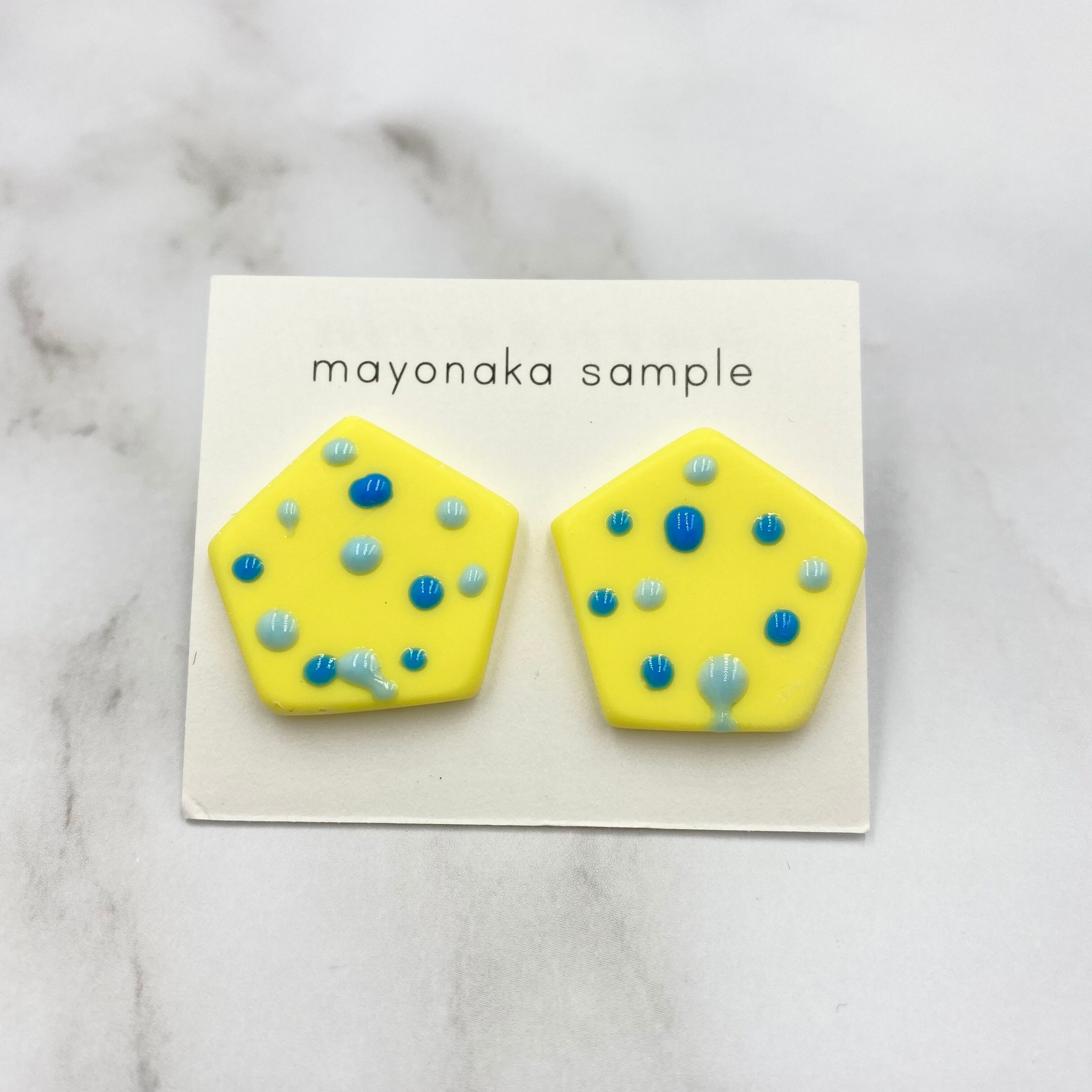 表面がぷっくりしたドットの五角形のイヤリング(ピアス)です。