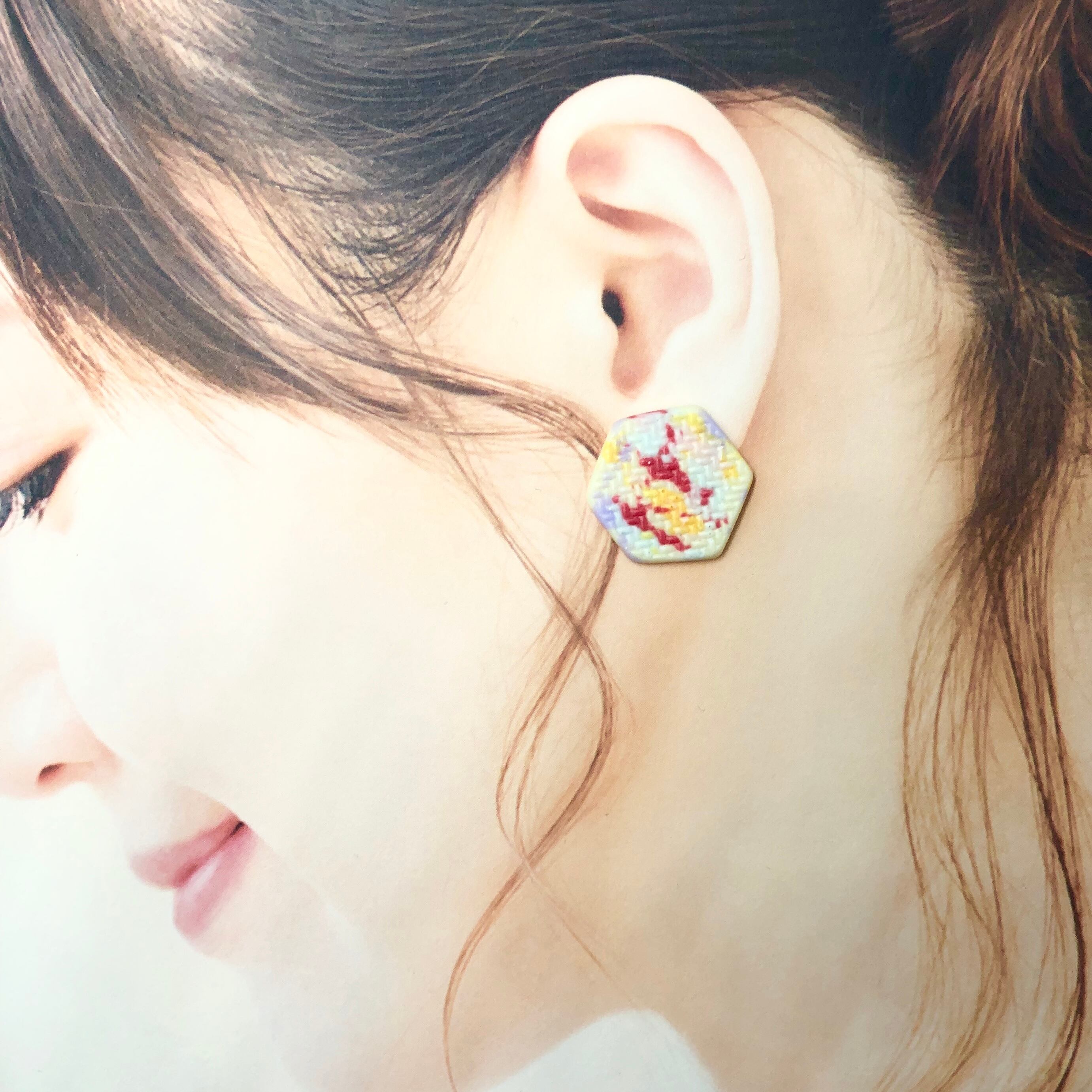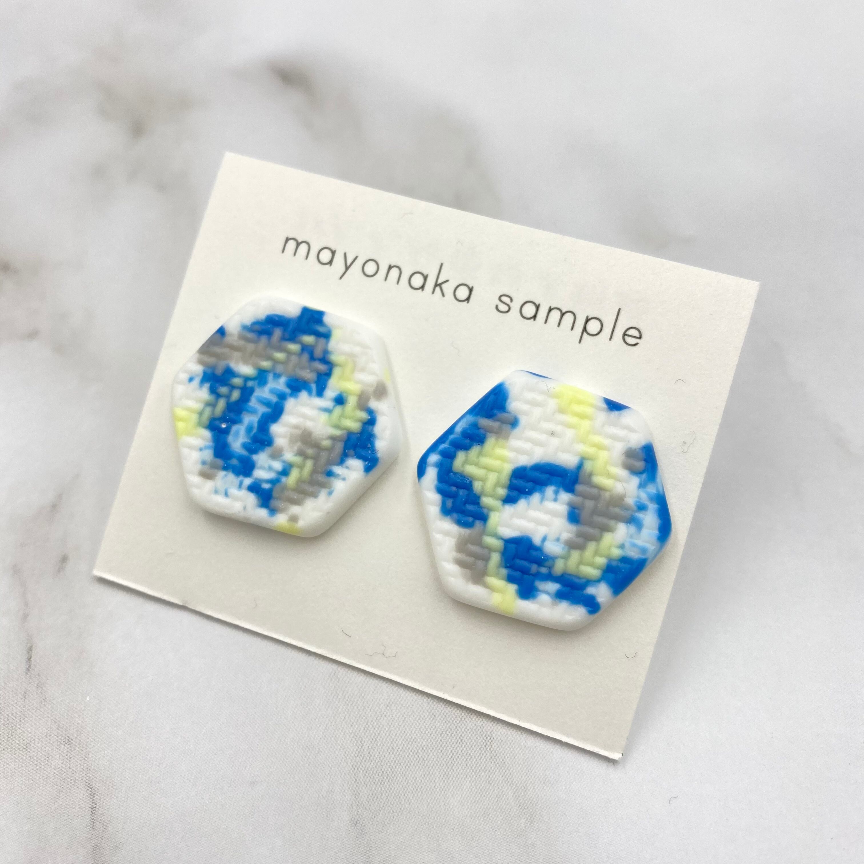 表面に模様のある六角形のイヤリング(ピアス)です。