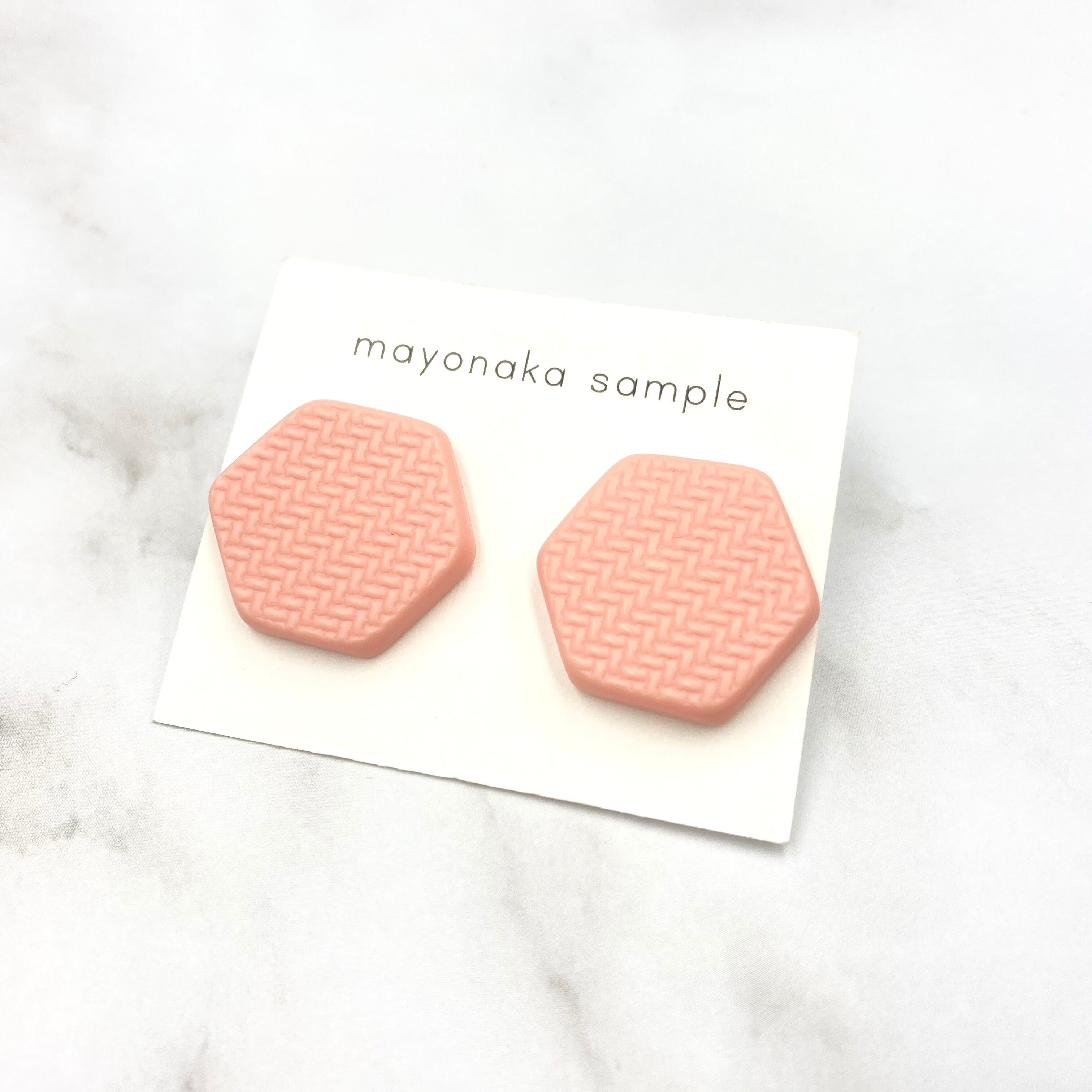 表面に模様のある六角形のイヤリング(ピアス)です。