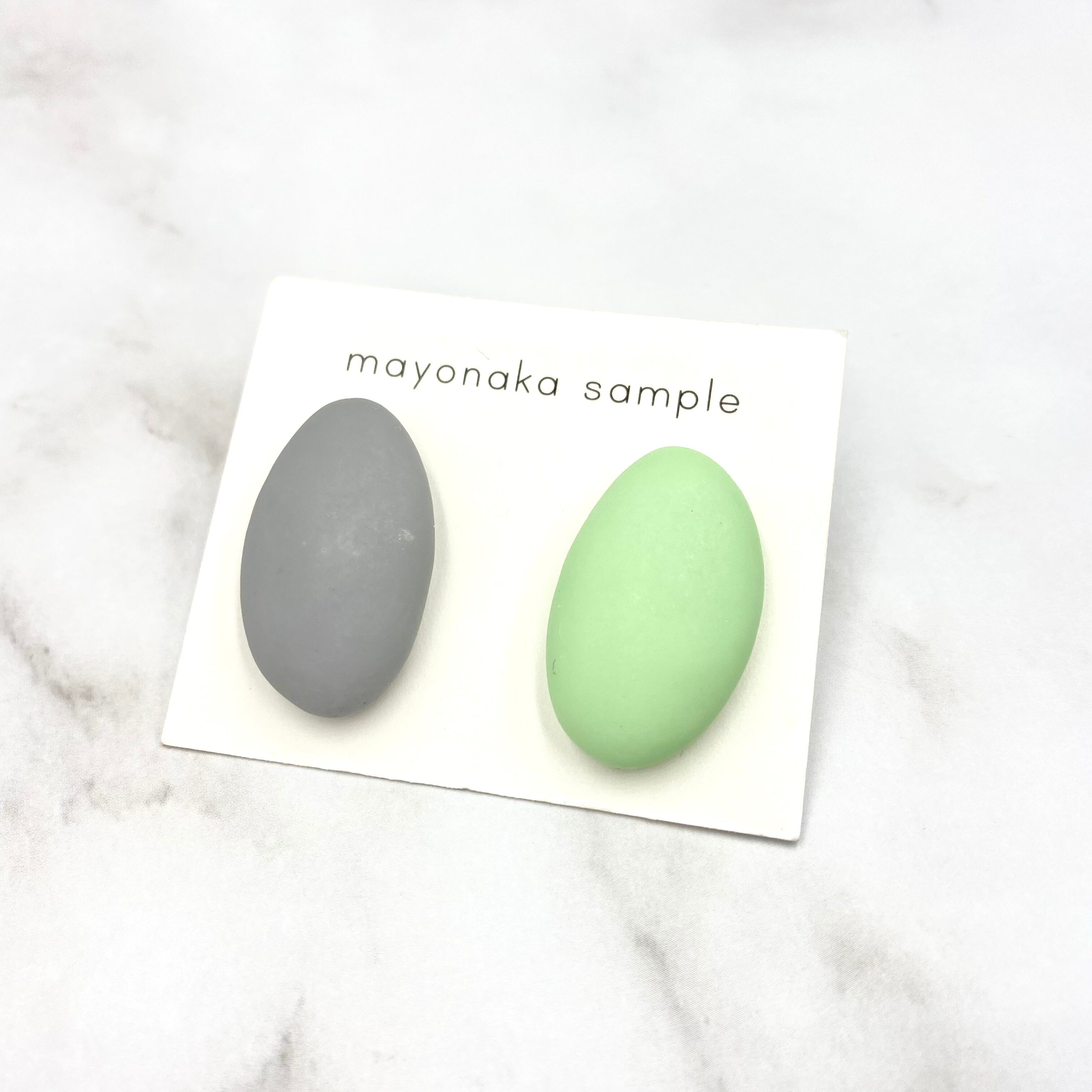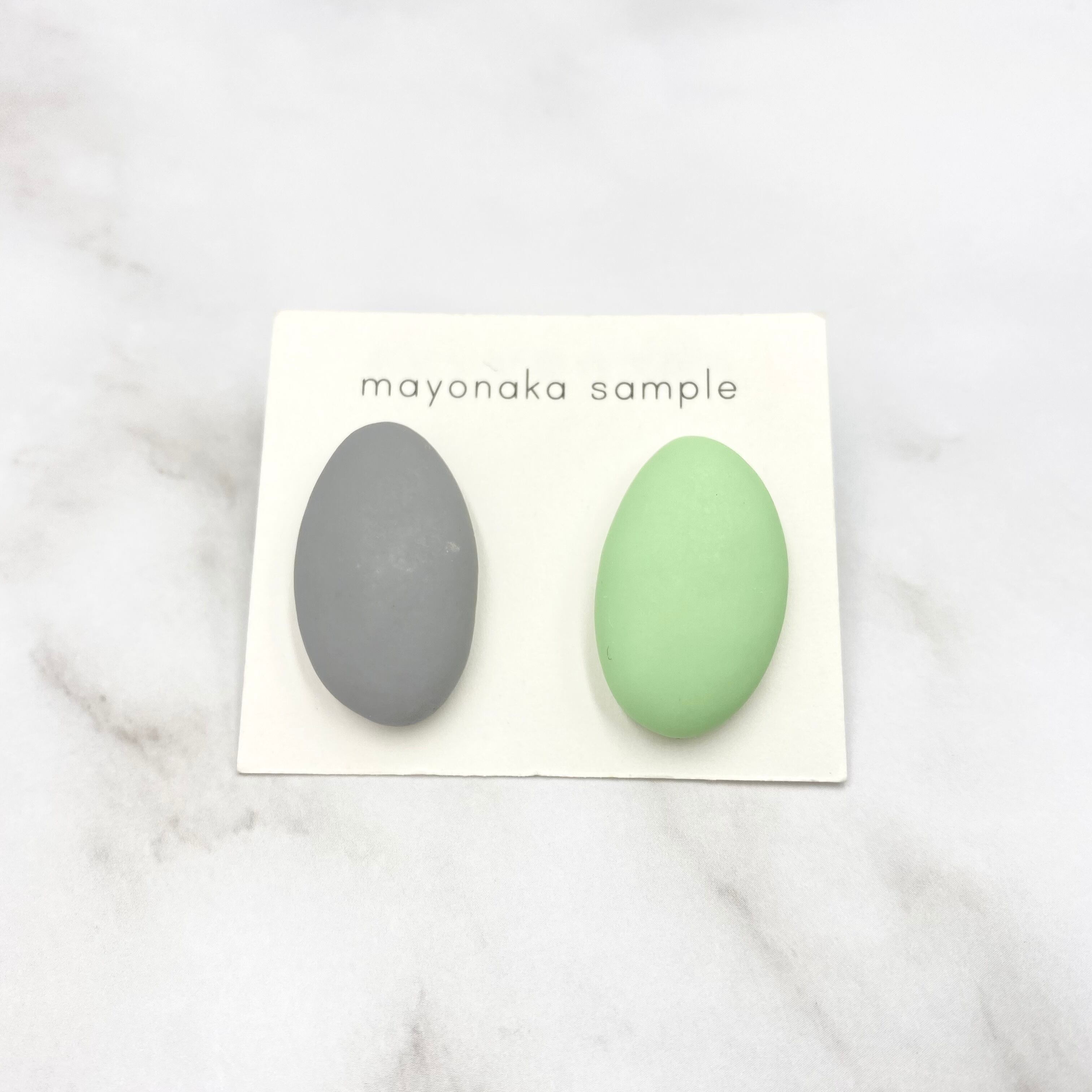 つるんと立体的な、少しおおきめな楕円のイヤリング(ピアス)です。