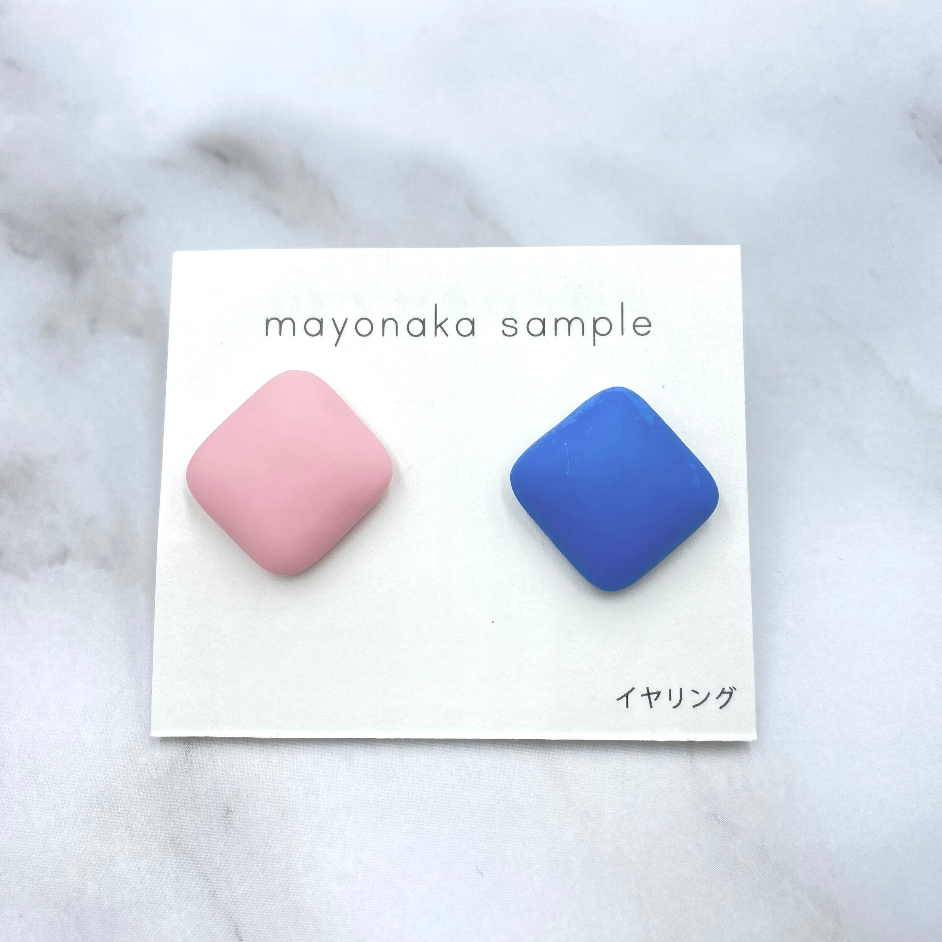 ぷっくり立体的なしかくのイヤリング(ピアス)です。