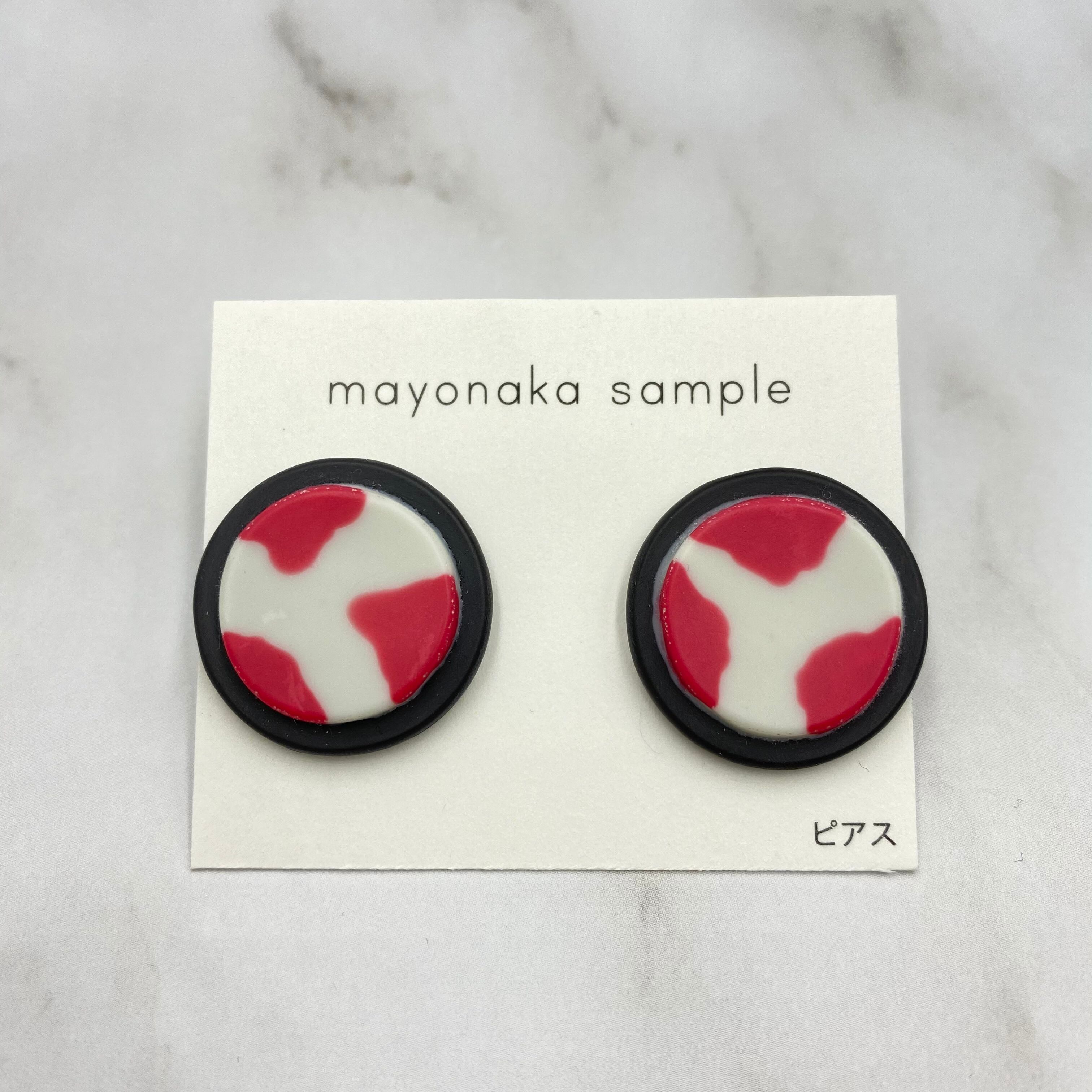 丸を重ねたようなイヤリング(ピアス)とヘアゴムのセットです。