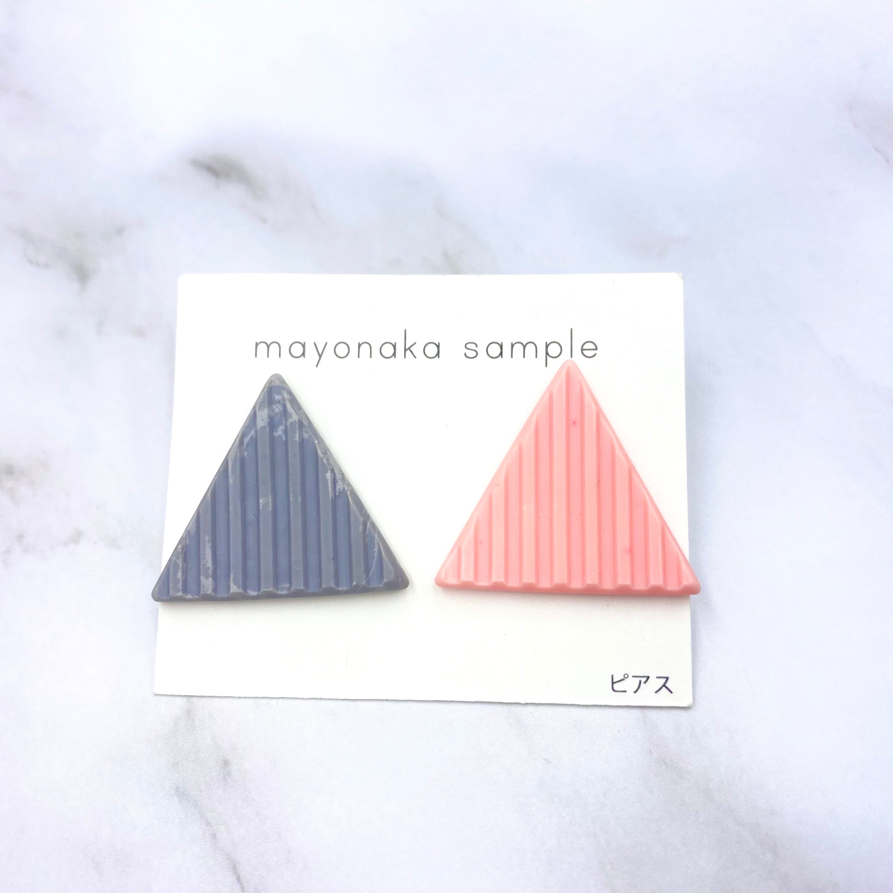 表面がボーダー模様の、三角形のイヤリング(ピアス)です。