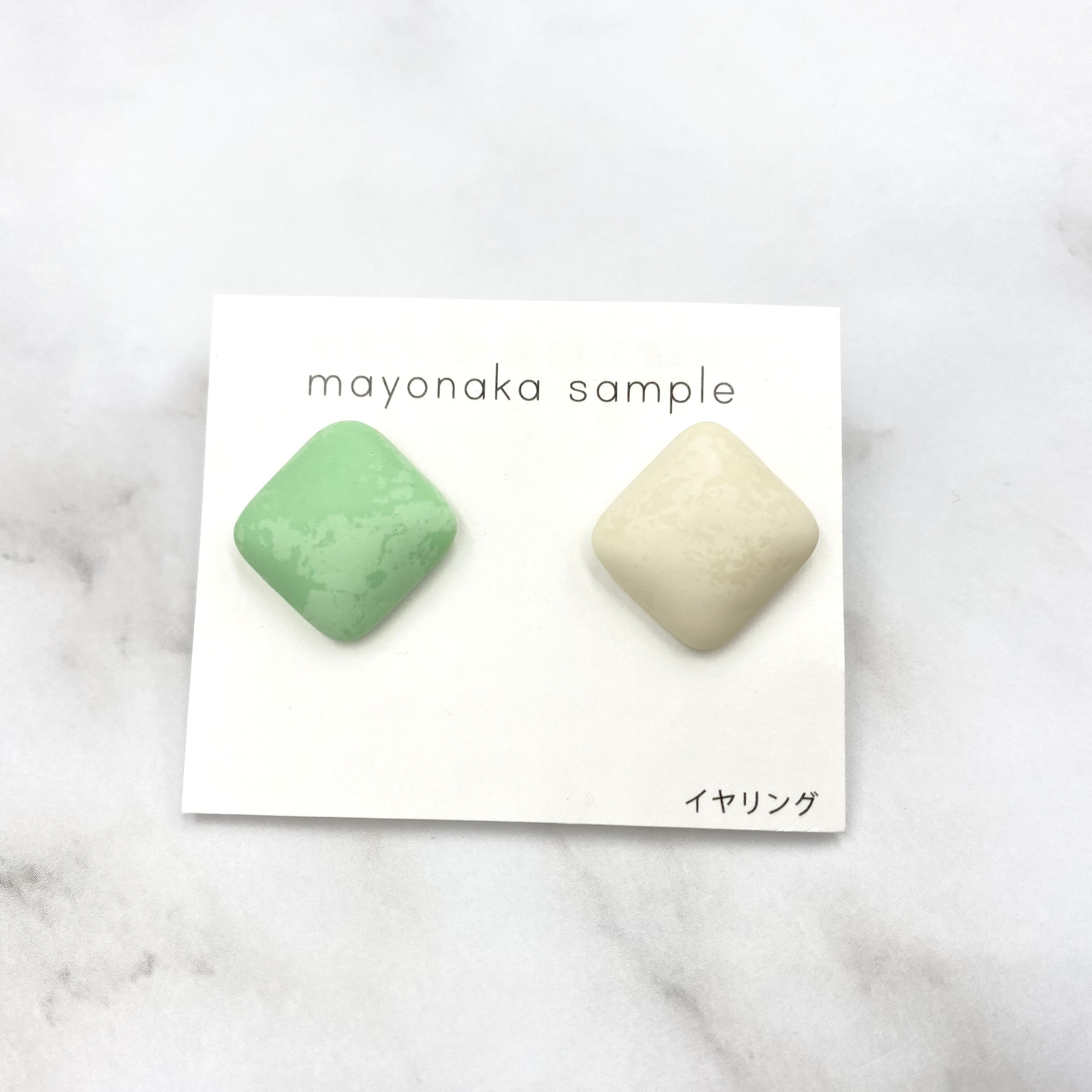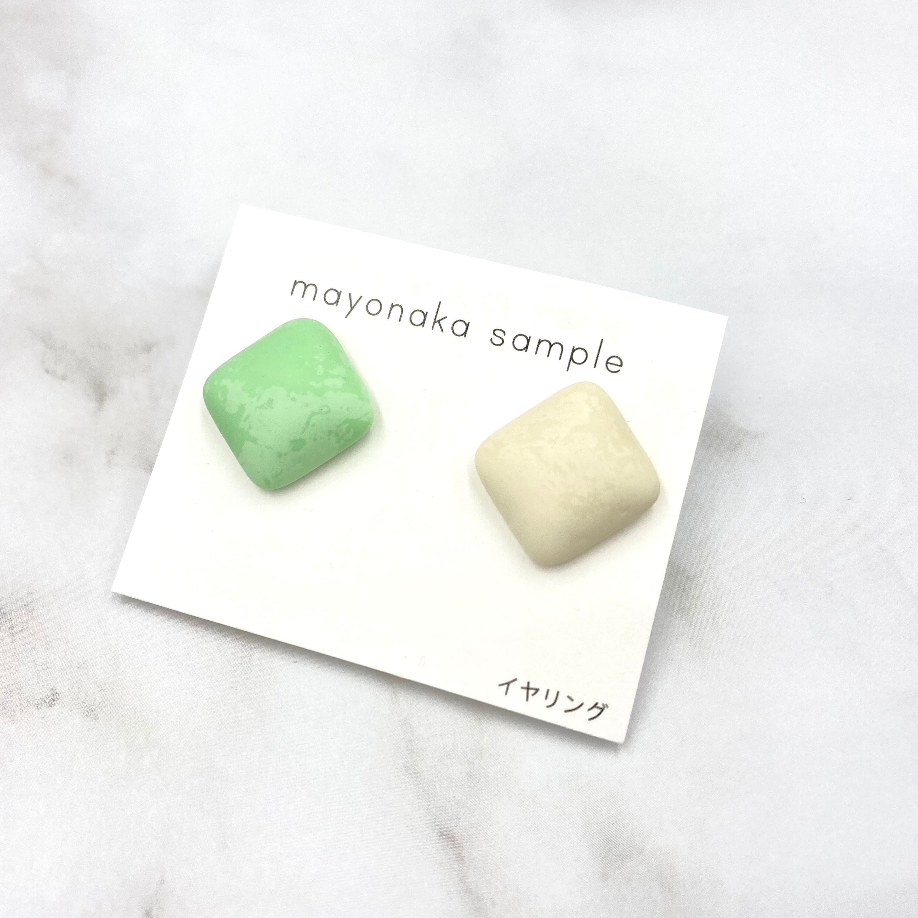ぷっくり立体的なしかくのイヤリング(ピアス)です。