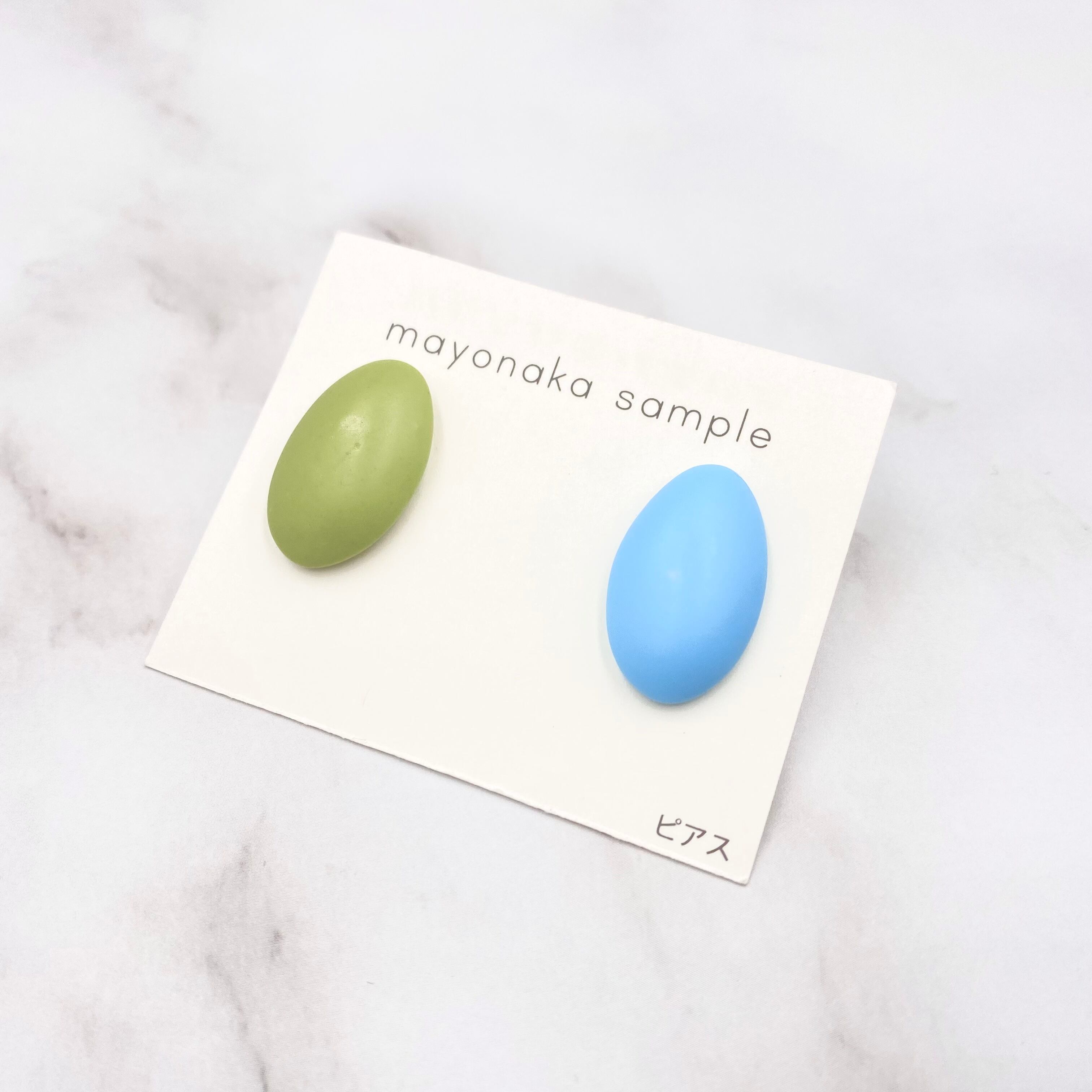 つるんと立体的な、少しこぶりな楕円のイヤリング(ピアス)です。