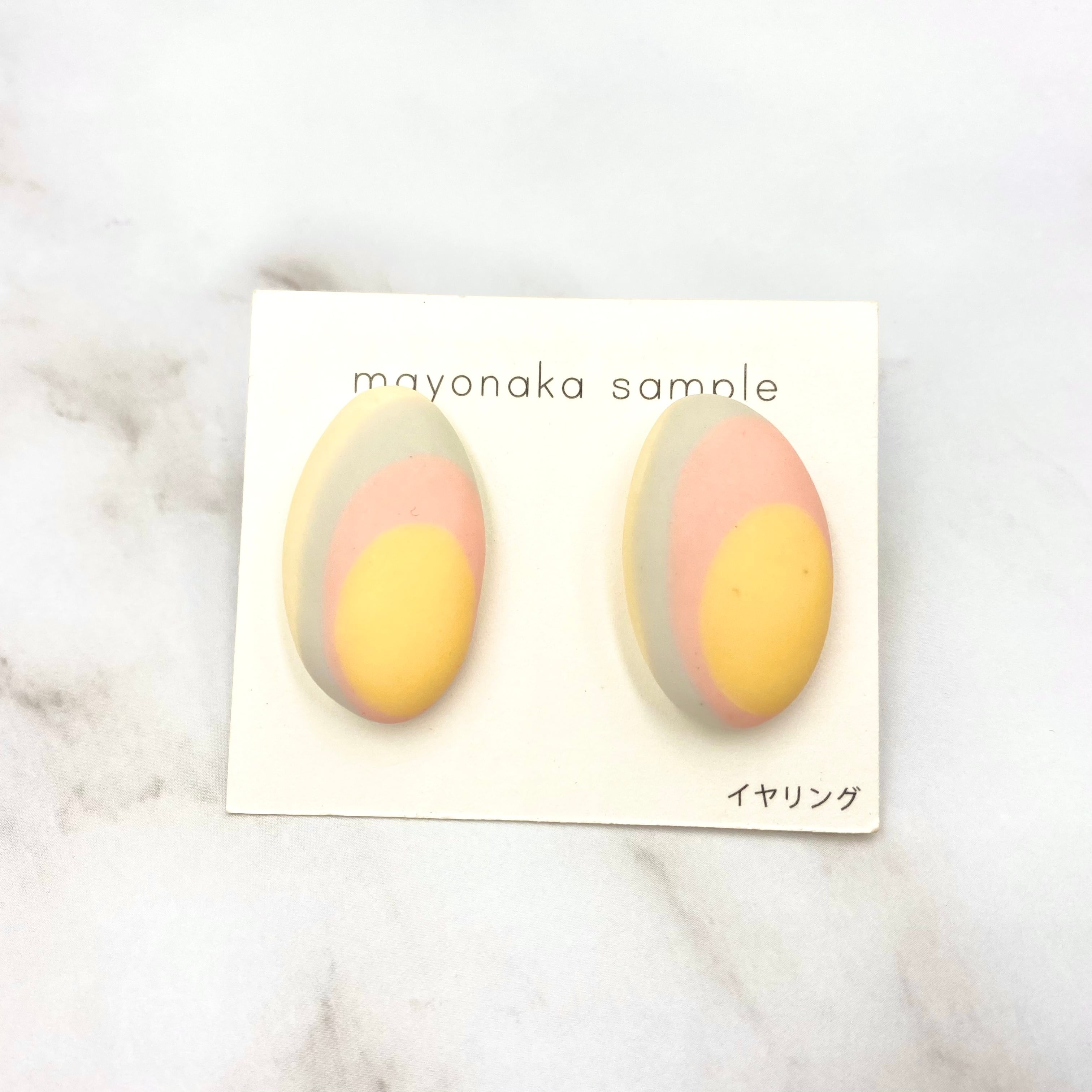 つるんと立体的な、少しおおきめな楕円のイヤリング(ピアス)です。
