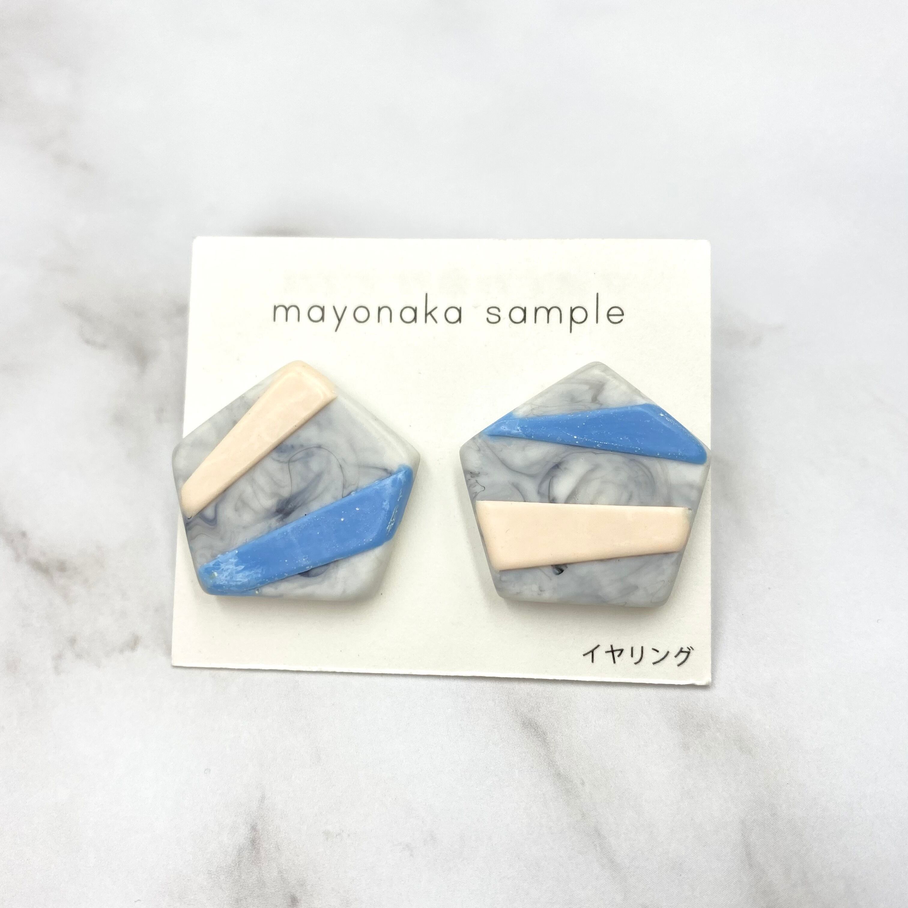 表面にラインの入った、五角形のイヤリング(ピアス)です。