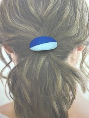 表面に模様のある、立体的な楕円のヘアゴムです。