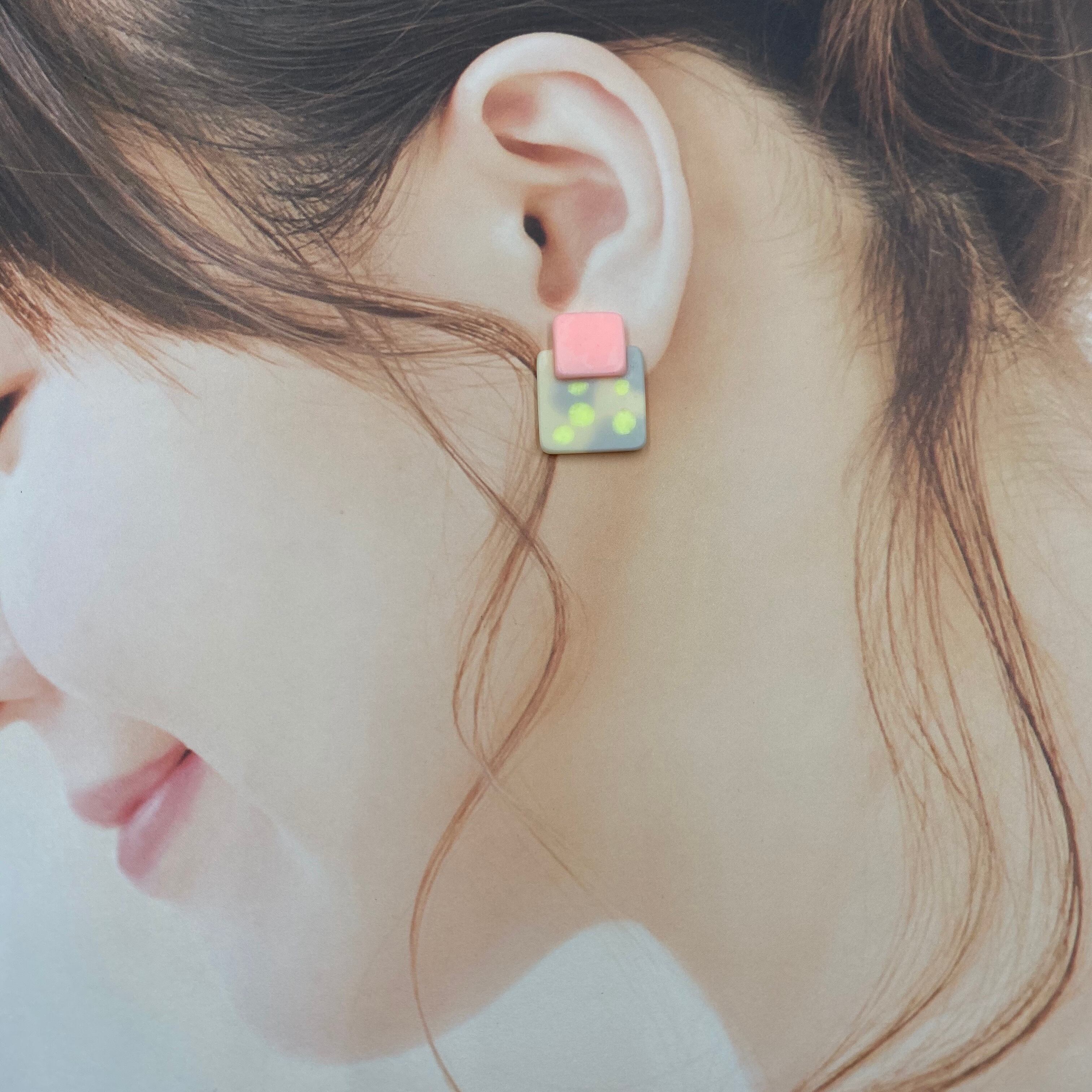 四角をふたつ重ねてずらしたようなイヤリング(ピアス)です。