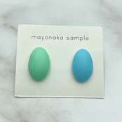 ぷっくり立体的な楕円と、立体的な四角のイヤリング(ピアス)のセットです。