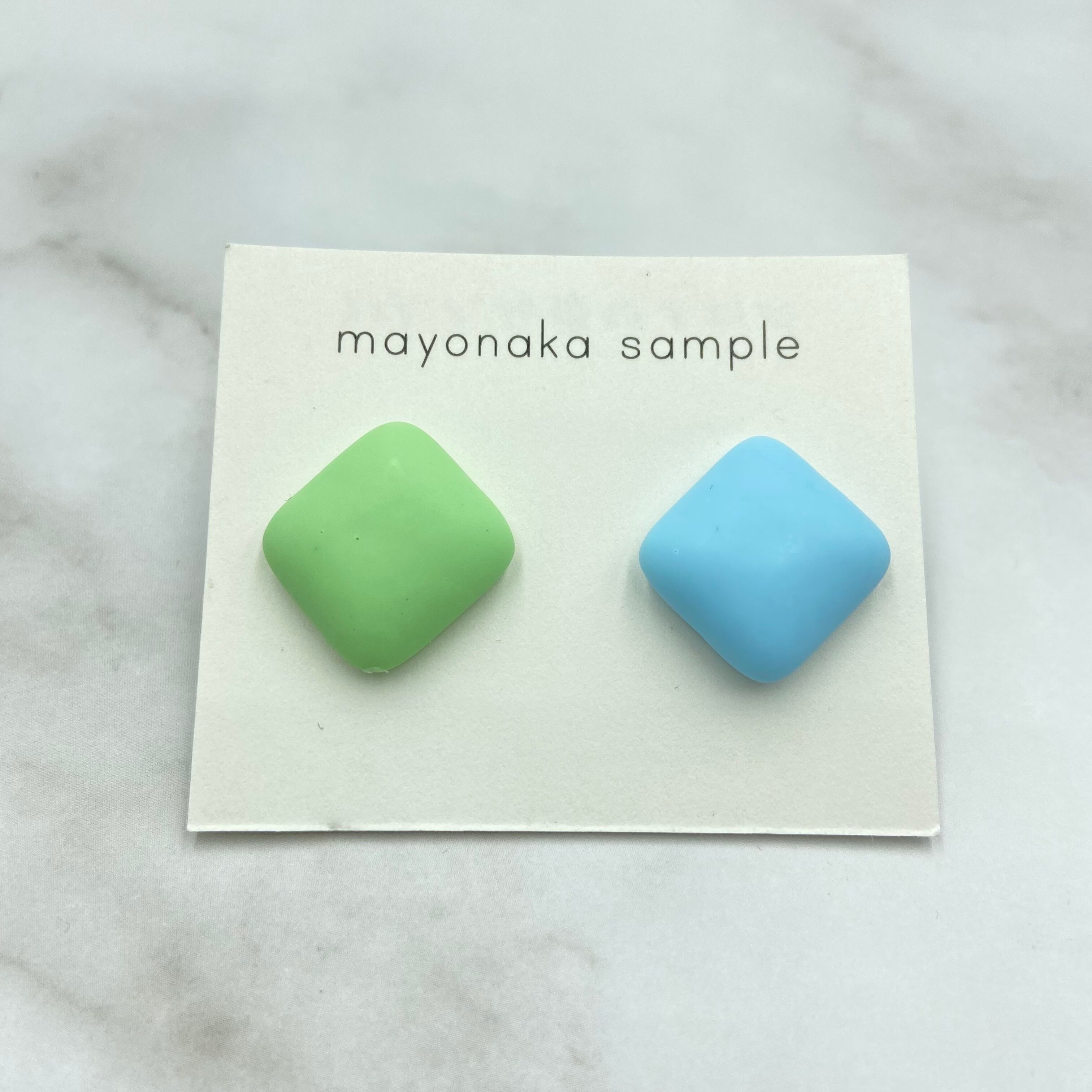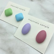 ぷっくり立体的な楕円と、立体的な四角のイヤリング(ピアス)のセットです。