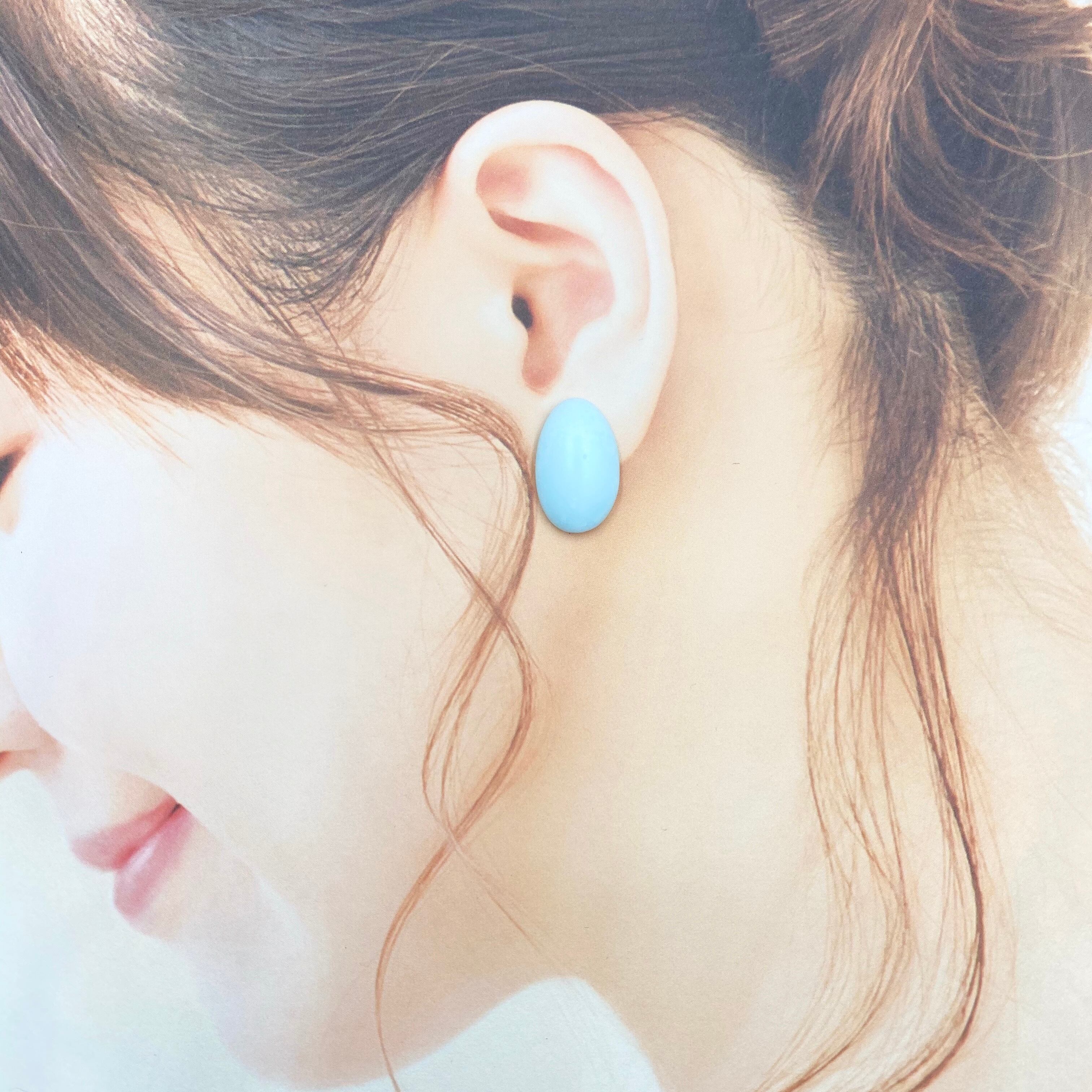 ぷっくり立体的な楕円と、立体的な四角のイヤリング(ピアス)のセットです。