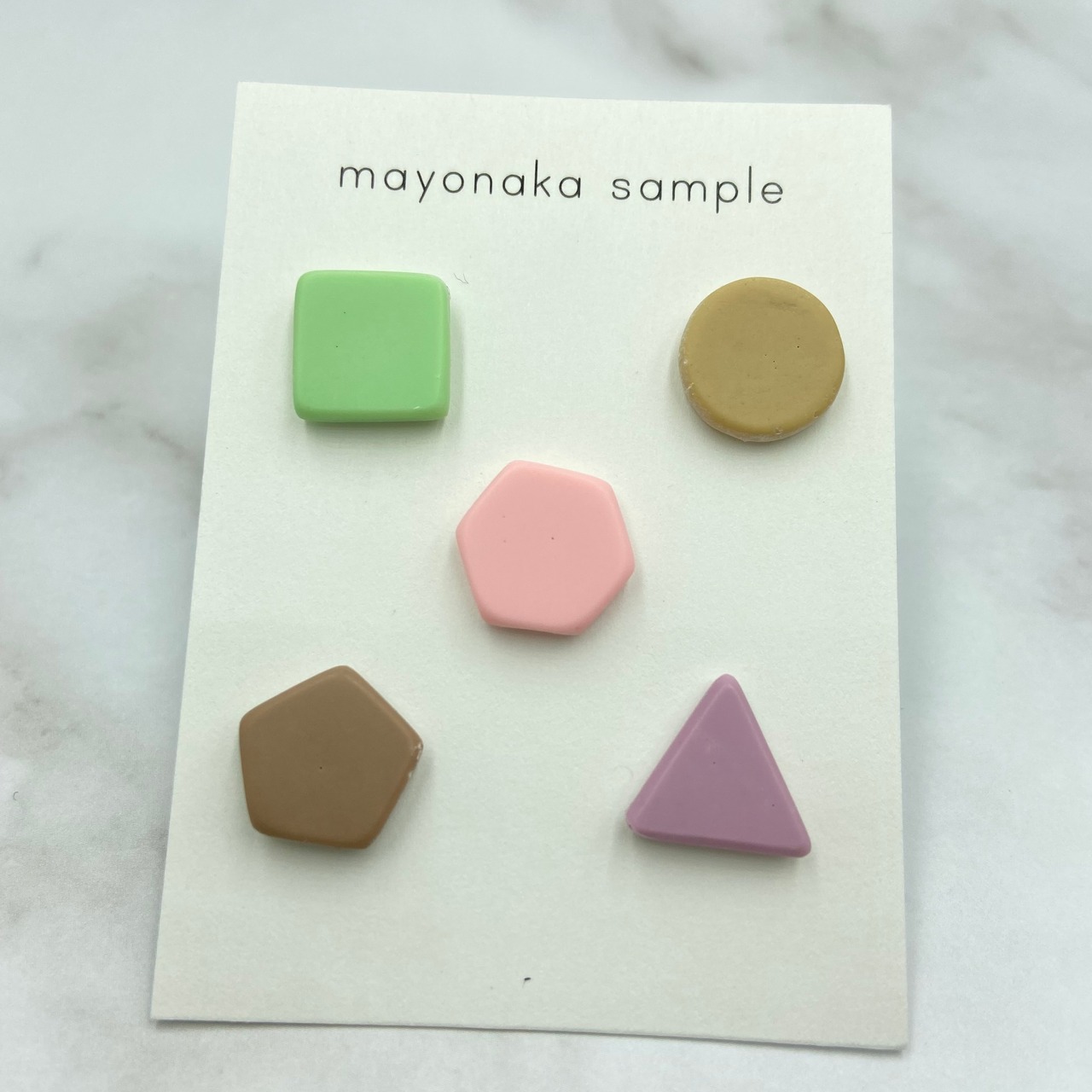 三角、四角、まる、五角形、六角形のイヤリング(ピアス)のセットです。
