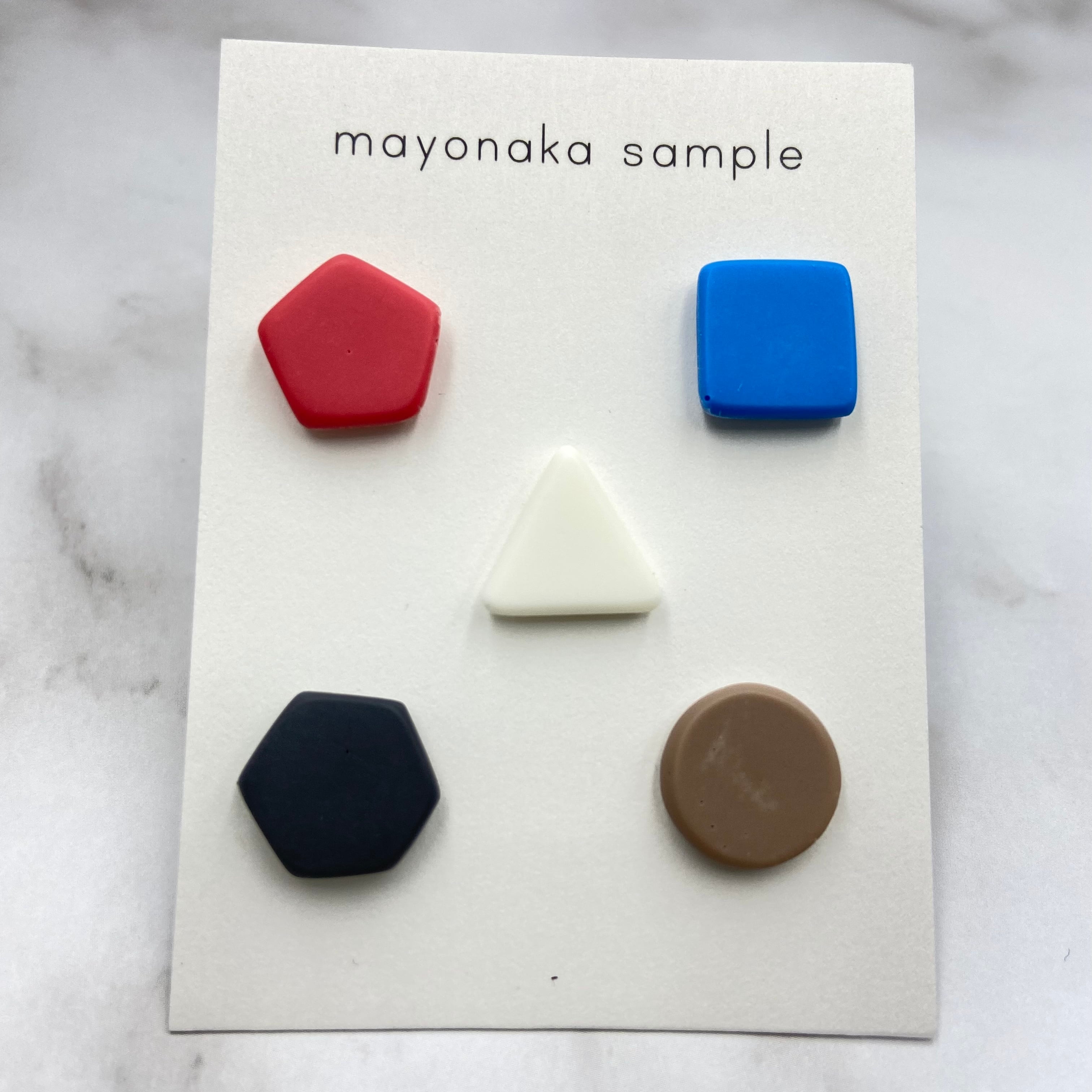 三角、四角、まる、五角形、六角形のイヤリング(ピアス)のセットです。